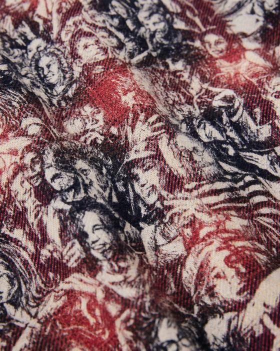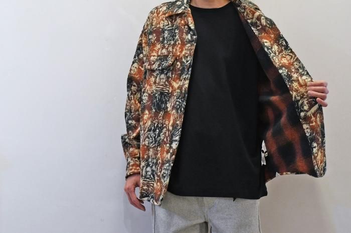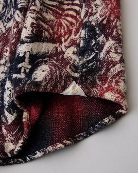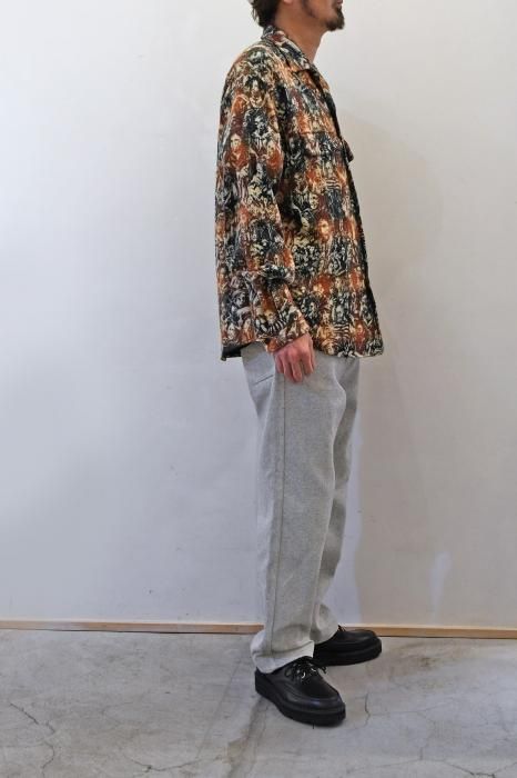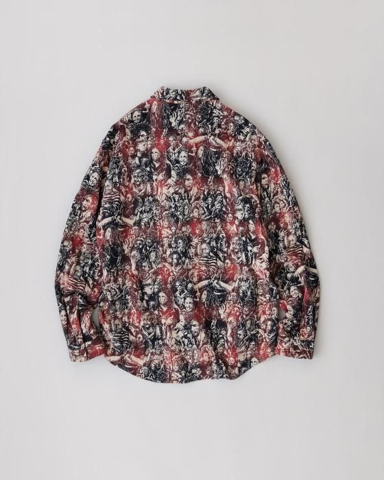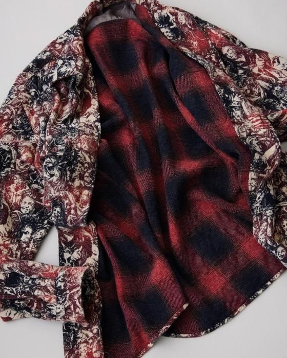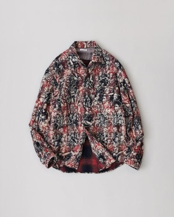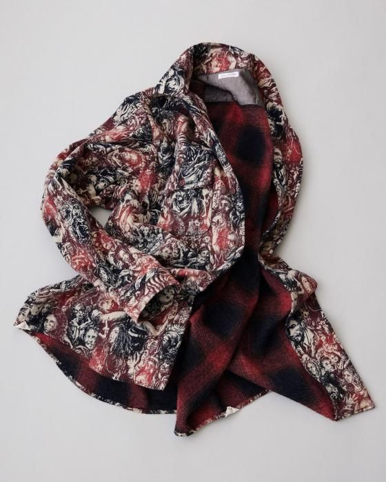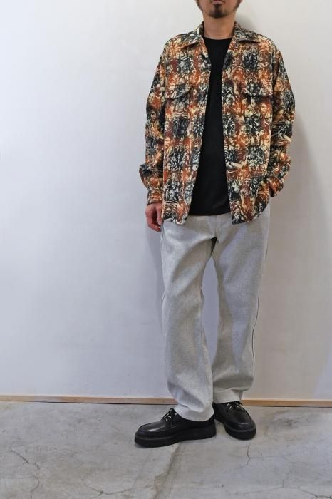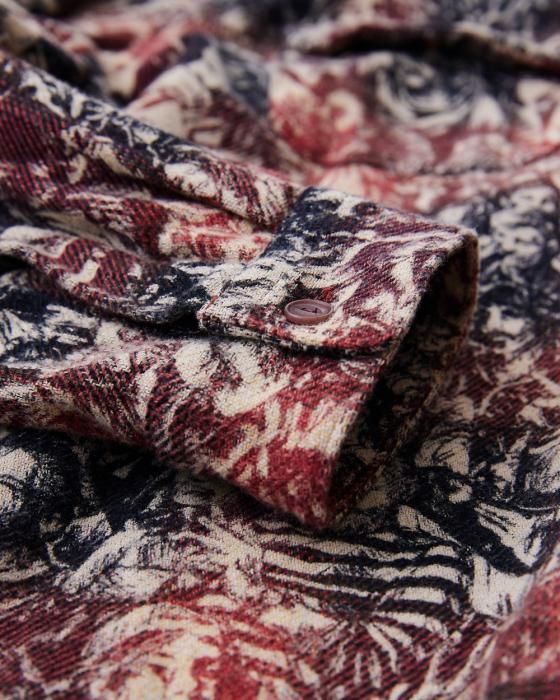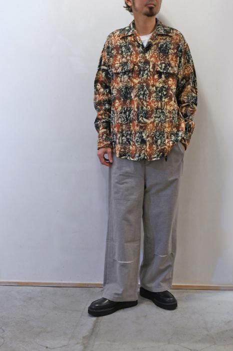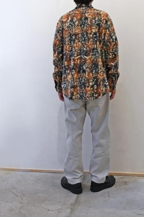 抜染加工した生地を使ったオープンカラーネルシャツ。