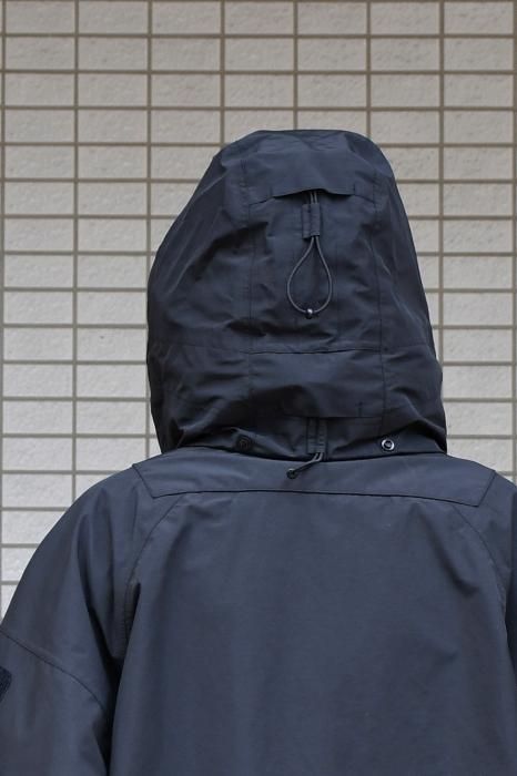 フードは襟に収納が可能で、裾を絞るためのアジャスターコードは