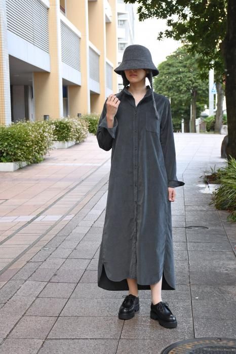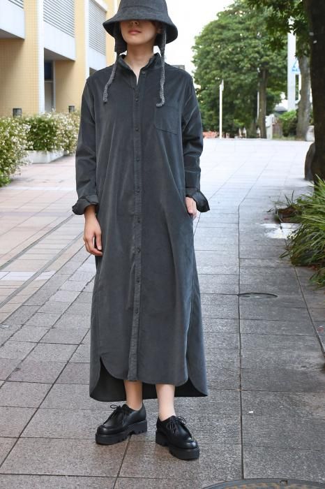 KristenseN DU NORD Light Corduroy Stand Collar Dress (Graphite)