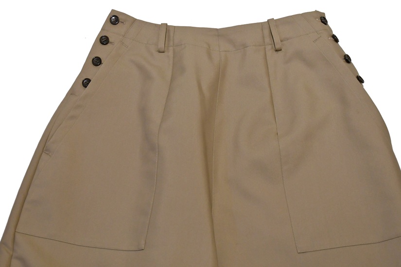 大きなLポケットや太い折り返しのカフスに付いた裾脇のボタンがポイントになります!