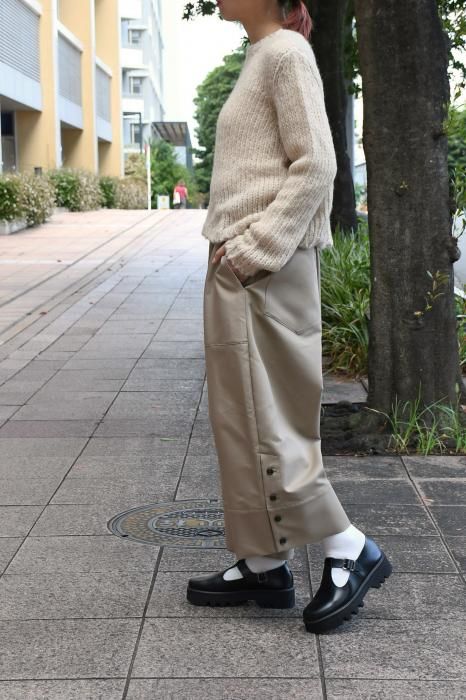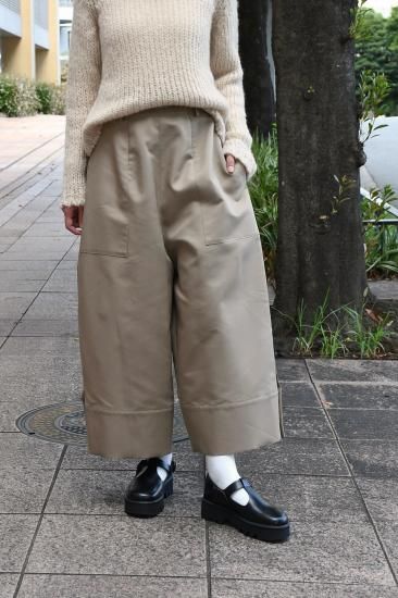 股上を深くとり、裾にかけて緩やかに丸みを持たせたワイドシルエット。