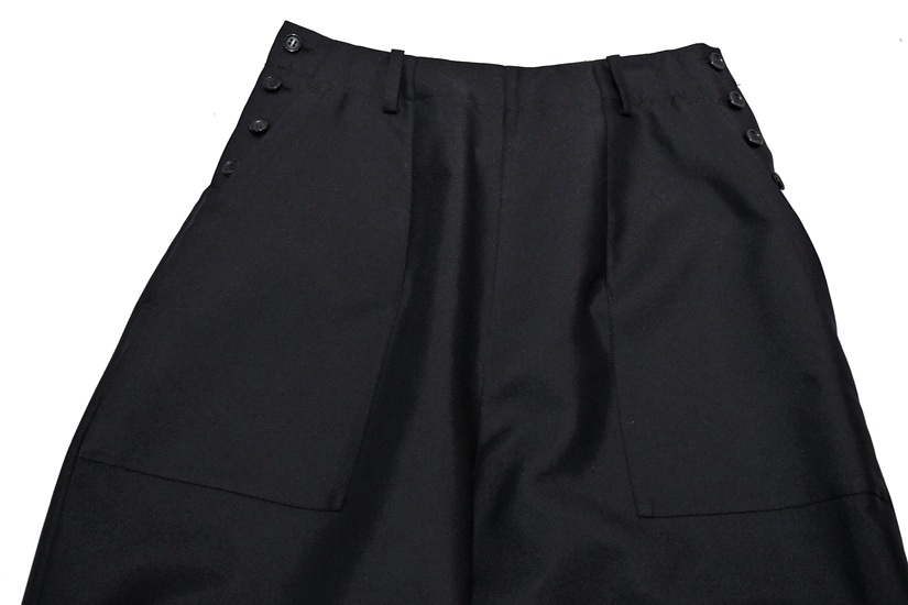 大きなLポケットや太い折り返しのカフスに付いた裾脇のボタンがポイントになります!