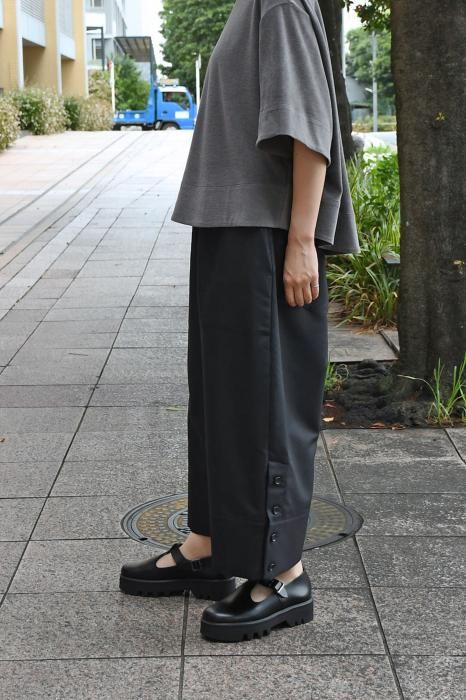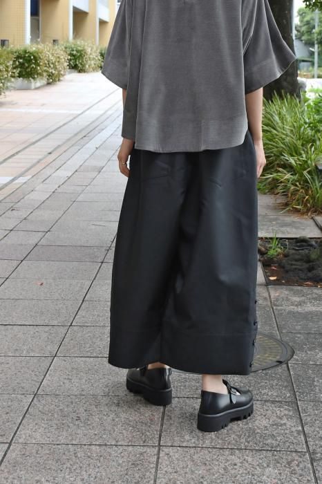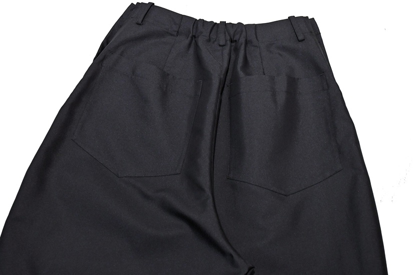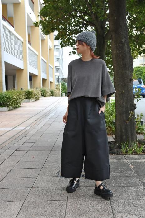 股上を深くとり、裾にかけて緩やかに丸みを持たせたワイドシルエット。