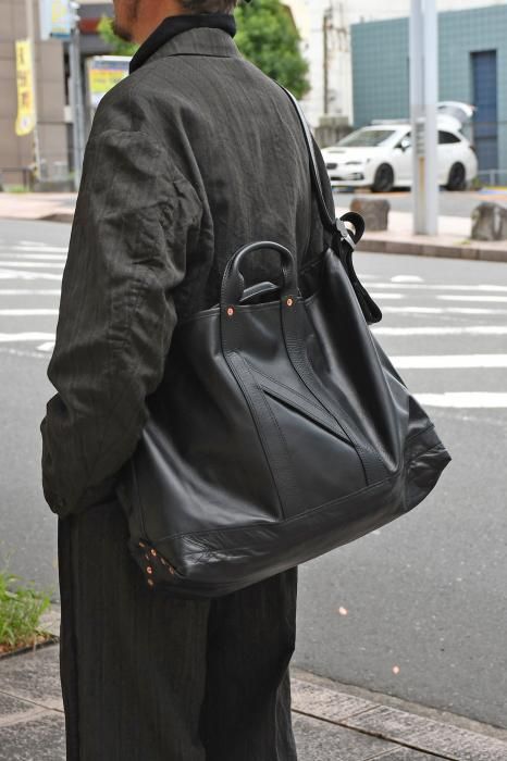 インスピレーションを得てデザイ ンしたショルダーストラップ付きトートバッグ。