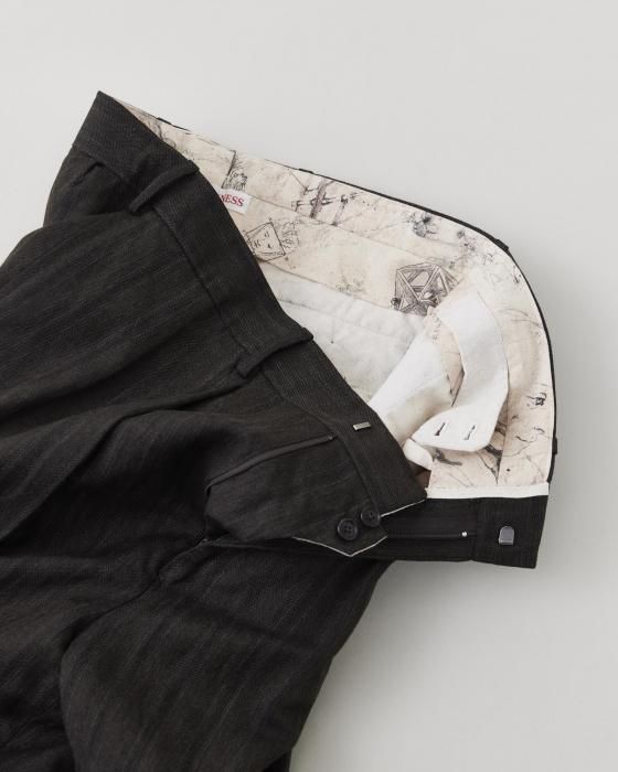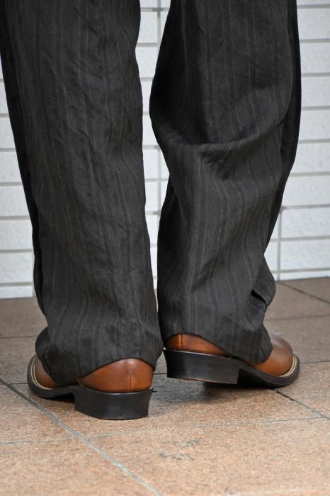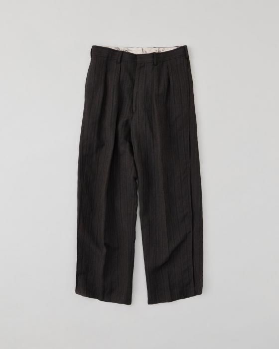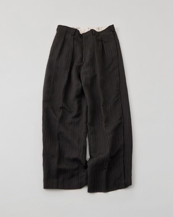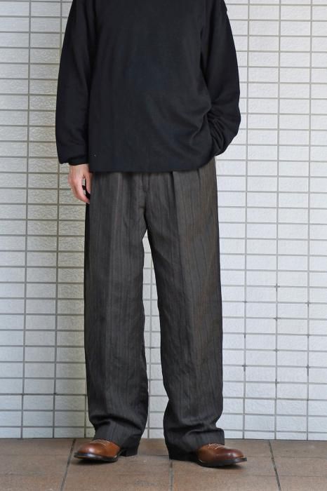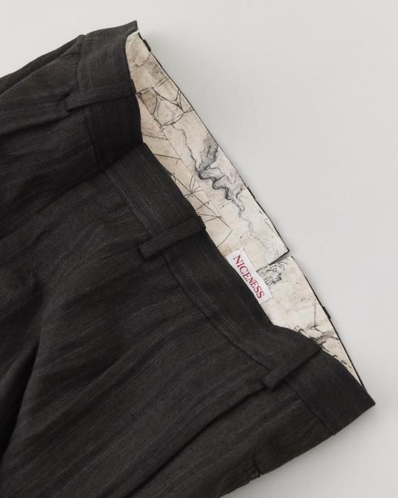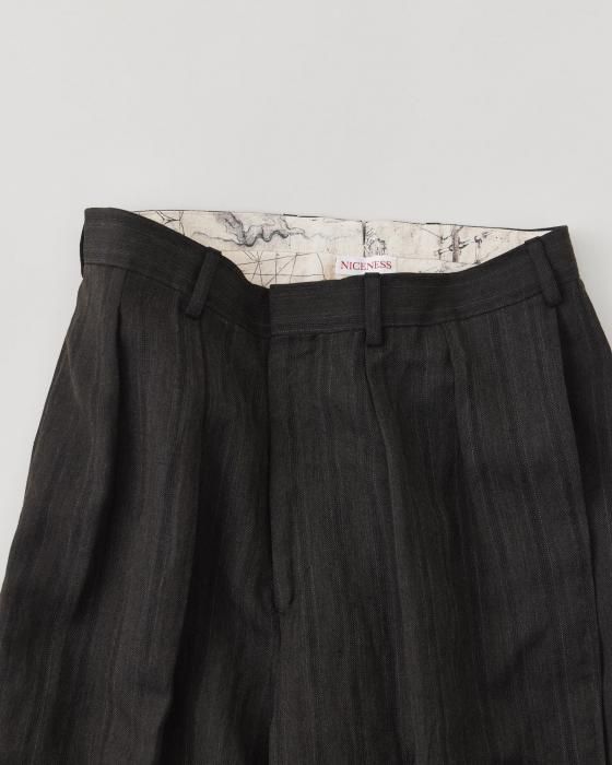 NICENESS Wool Linen Stripes Flying V Trousers(Brown)