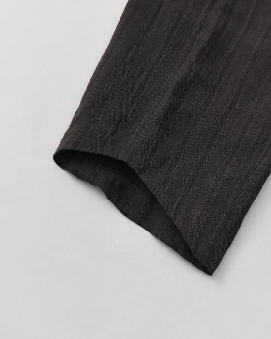 後ろ裾部分に大きくV字に開きを入れ、前側裾に生地がたわむシルエット。
