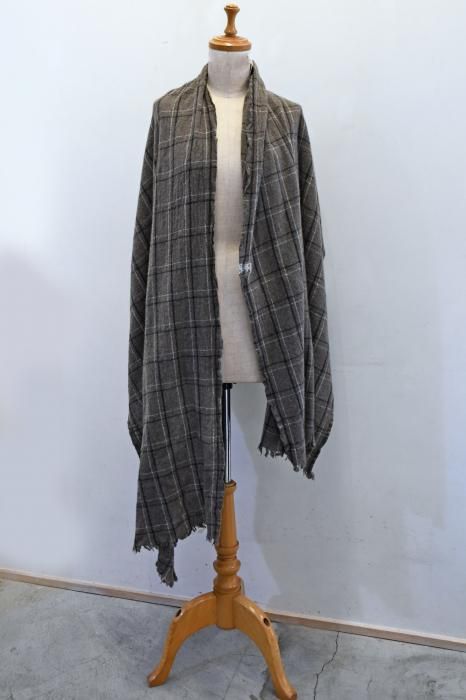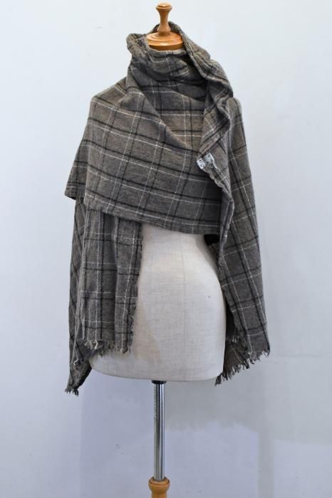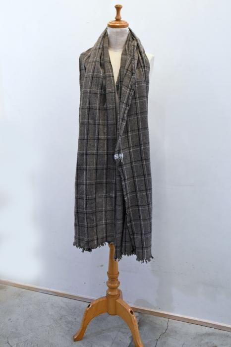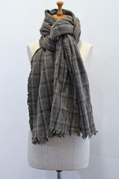 100%ピュアカシミヤ糸を使用したチェックの大判ストール。